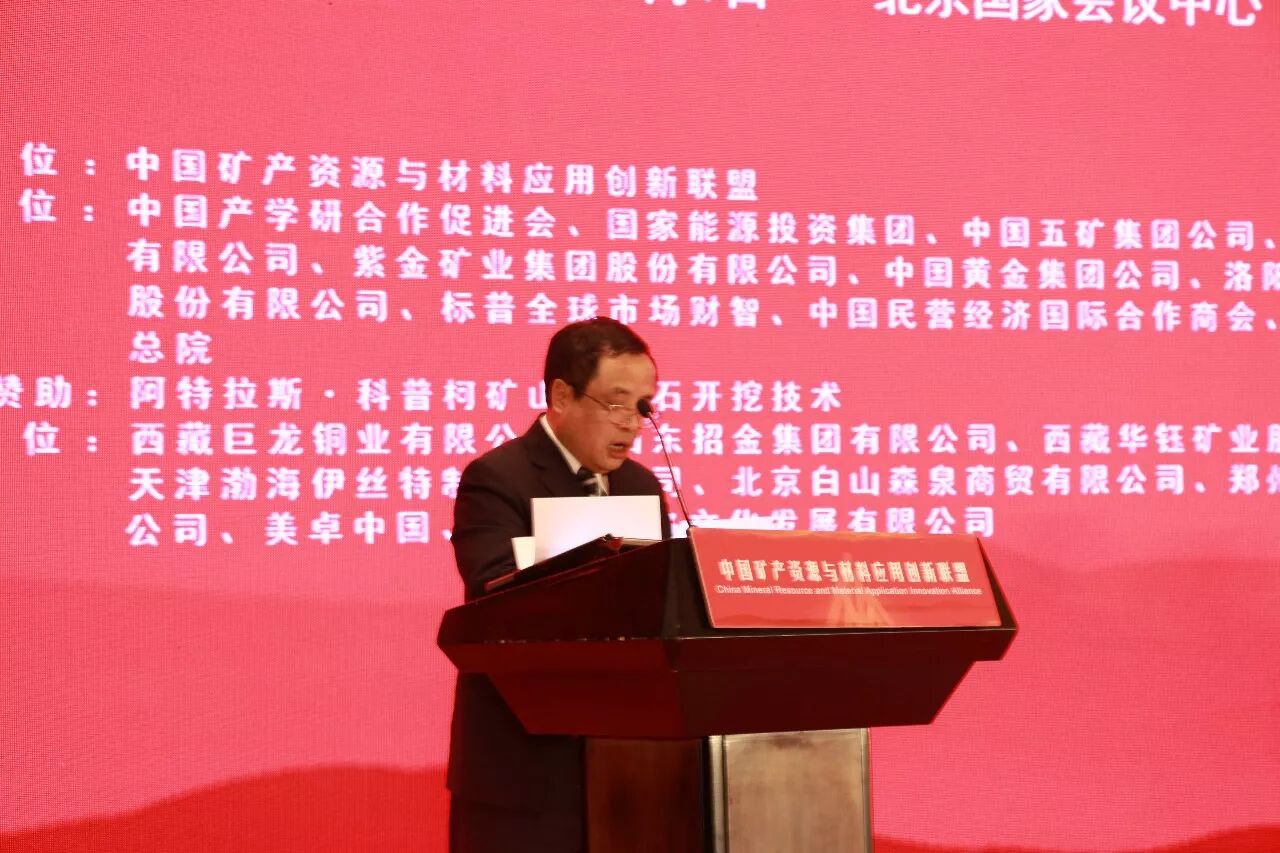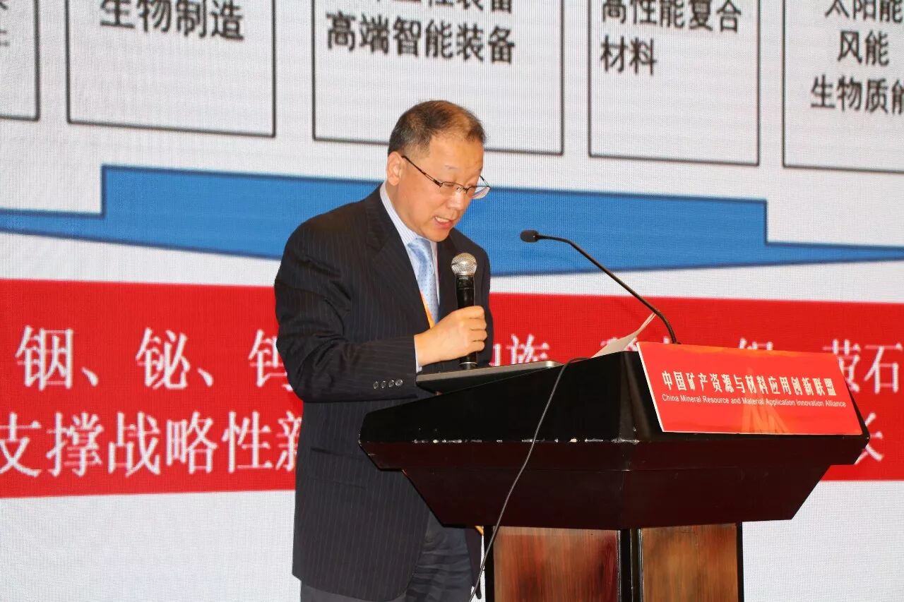 ▲中国产学研促进会执行副会长王建华宣布中国矿产资源与材料应用创新联盟成立。