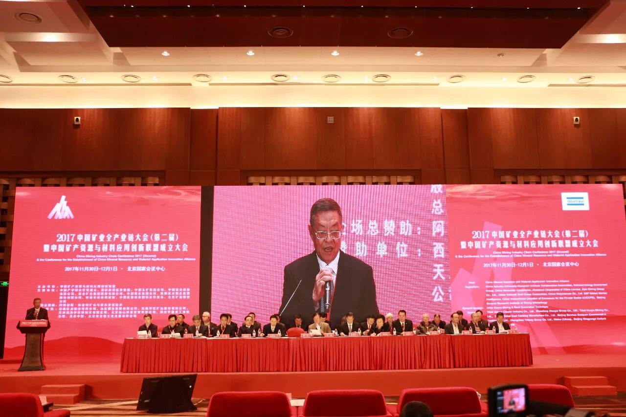 11月30日上午,2017中国矿业全产业链大会(第二届)暨中国矿产资源与材料应用创新联盟成立大会在国家会议中心正式召开。